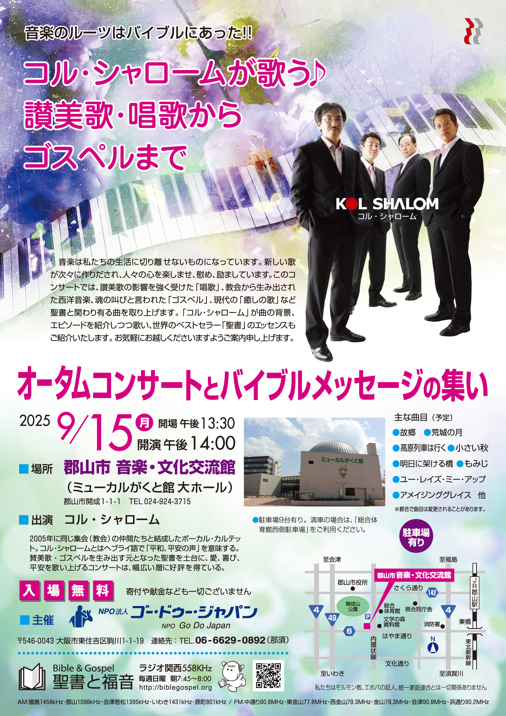 2025年9月10日 / 最終更新日時 : 2025年9月16日 牧場の羊 ニュース コル・シャローム 2025.9.15(月) 郡山 コンサートご案内 ミューカルがくと館にて。終了しました。 コンサートでの様子